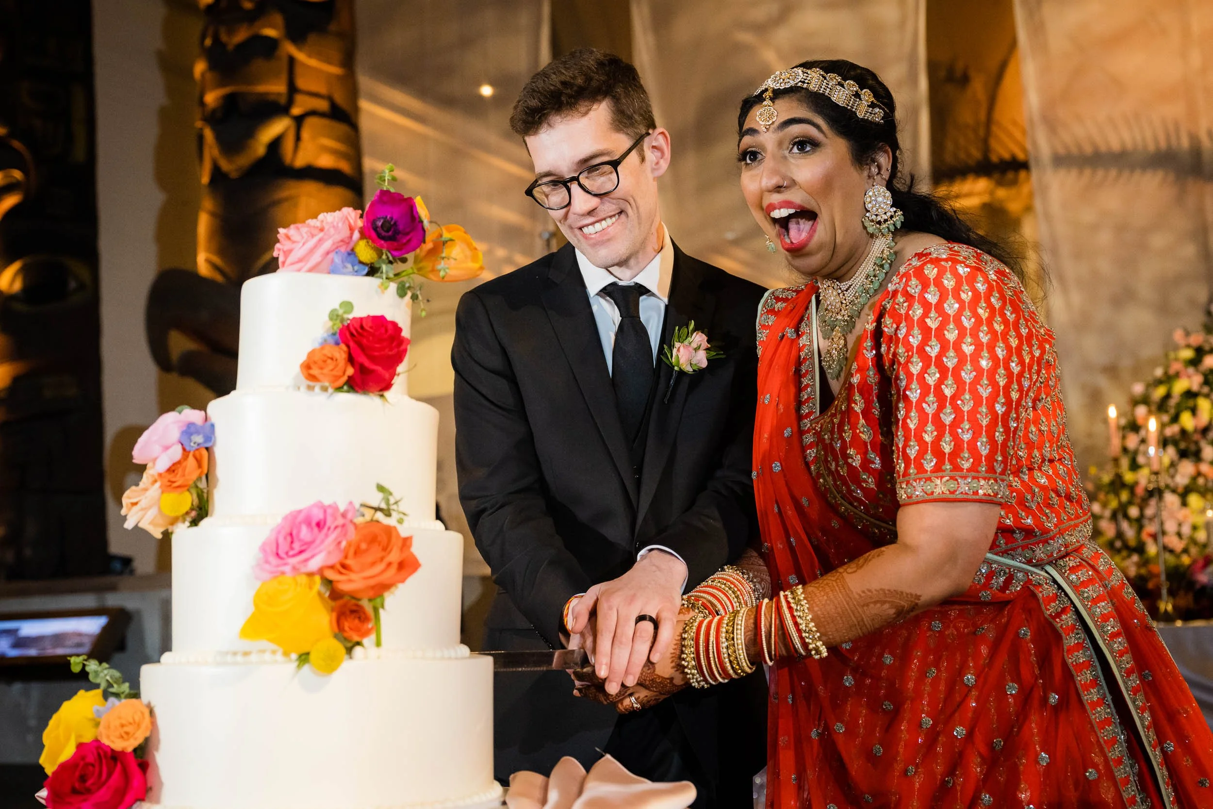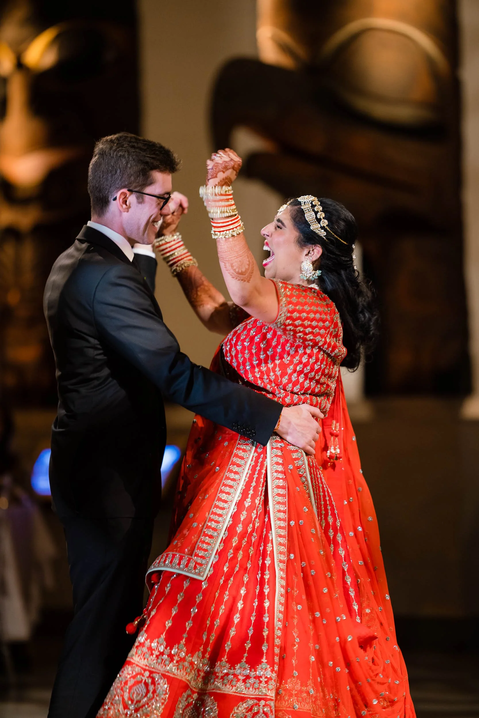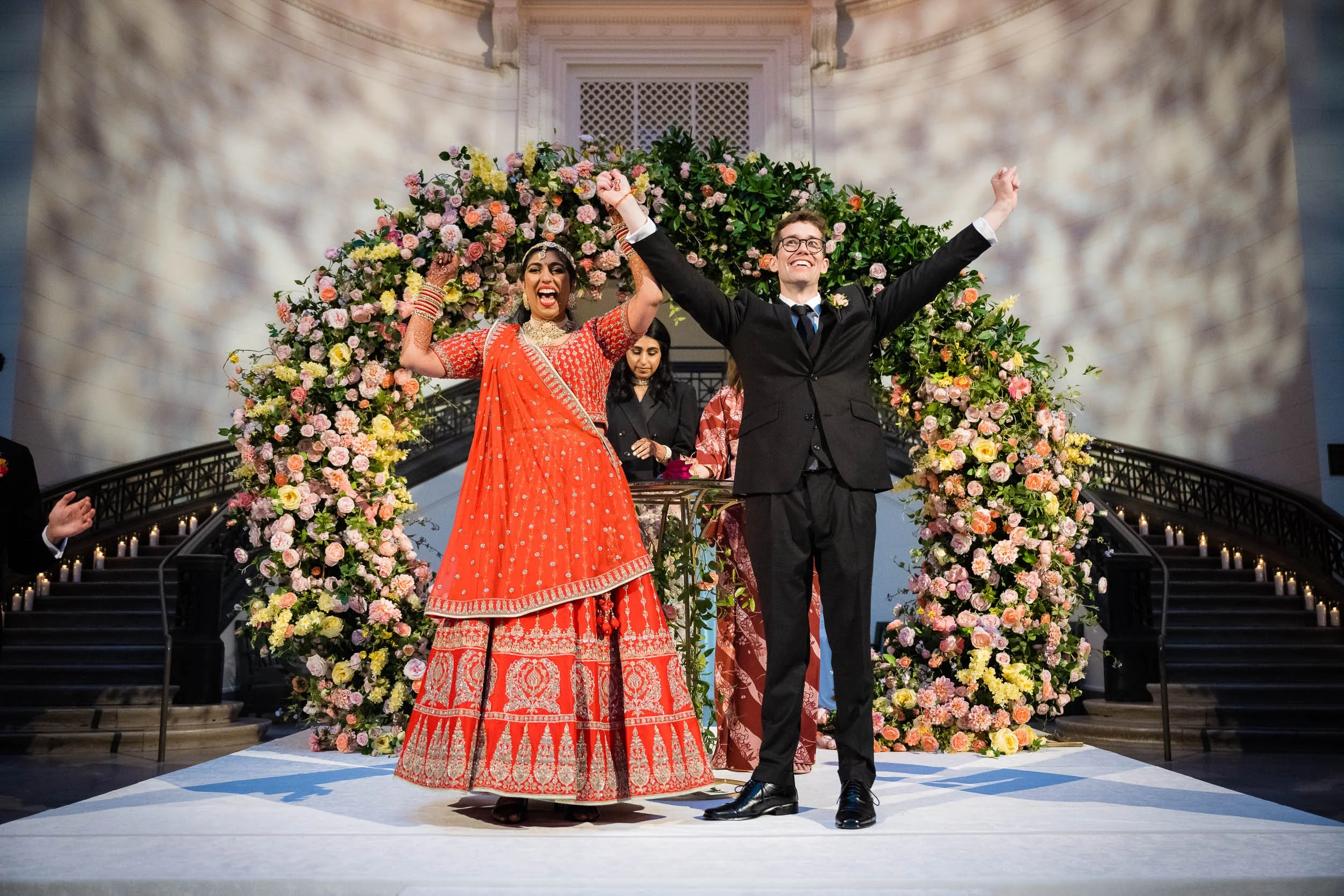 There were quiet, emotional moments during the ceremony, balanced with laughter and a sense of lightness that carried throughout the space. The combination of their personalities, the vibrant design, and the museum setting created something that felt both grand and deeply personal.