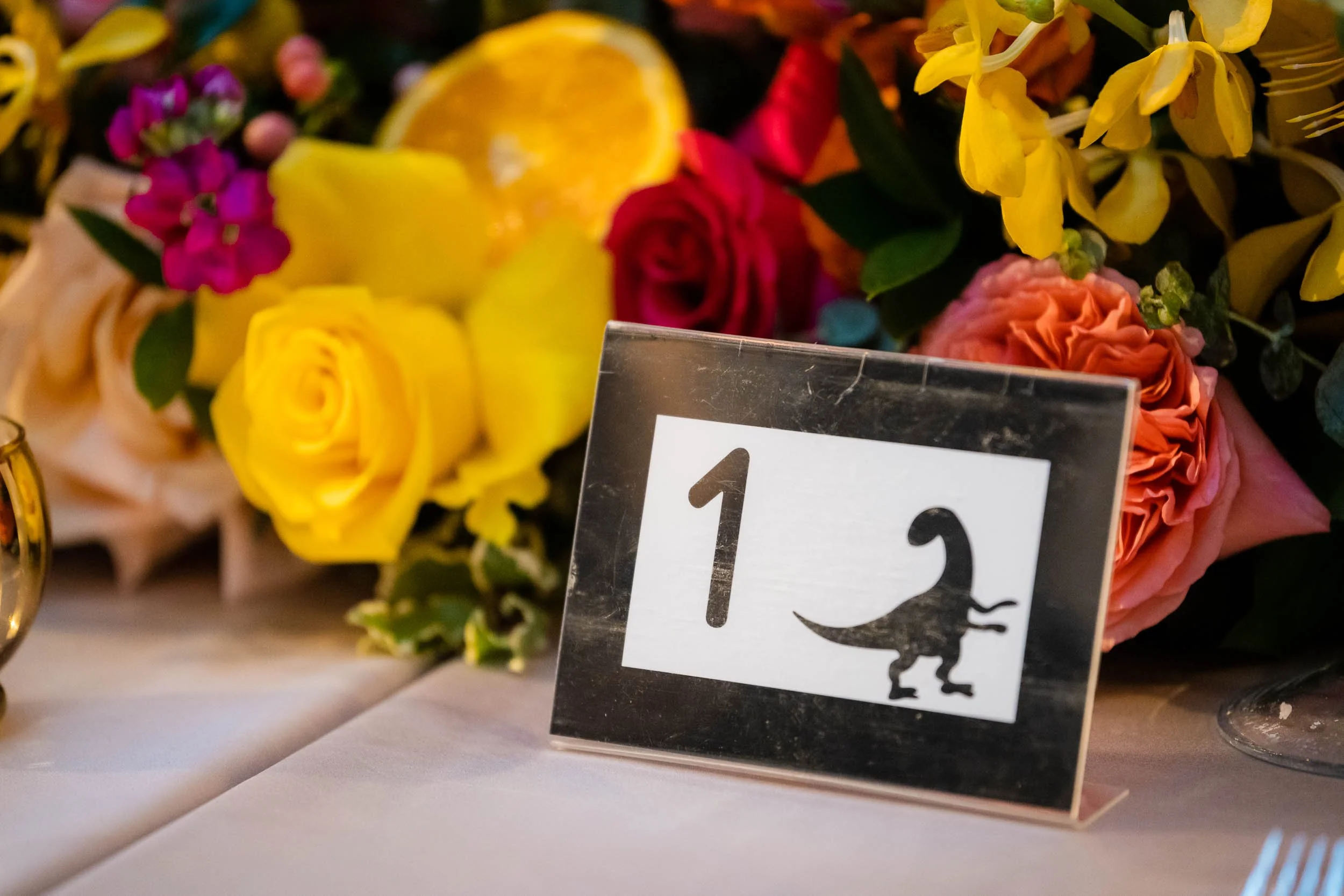 From the start, they approached their wedding with a clear mindset: celebrate with their people, lean into what they love, and not overcomplicate the rest. That meant bright colors, playful design touches inspired by dinosaurs, and a day that balanced emotional moments with a lot of joy.