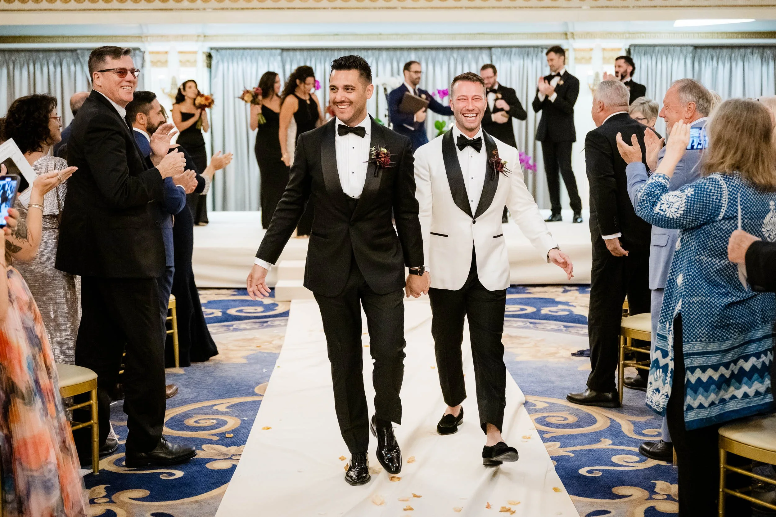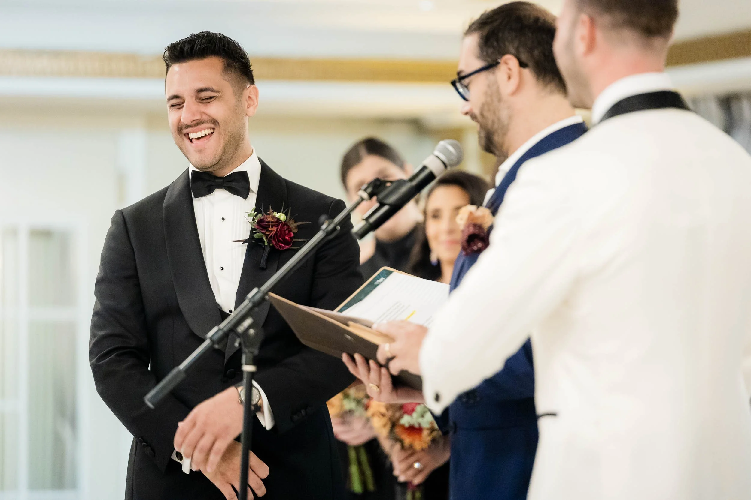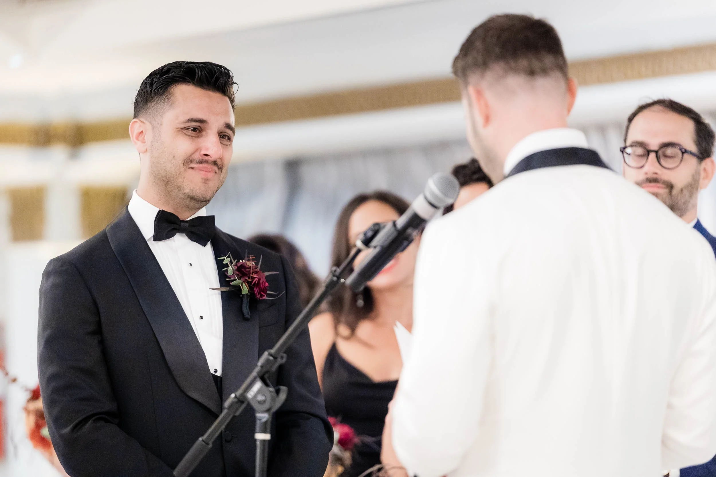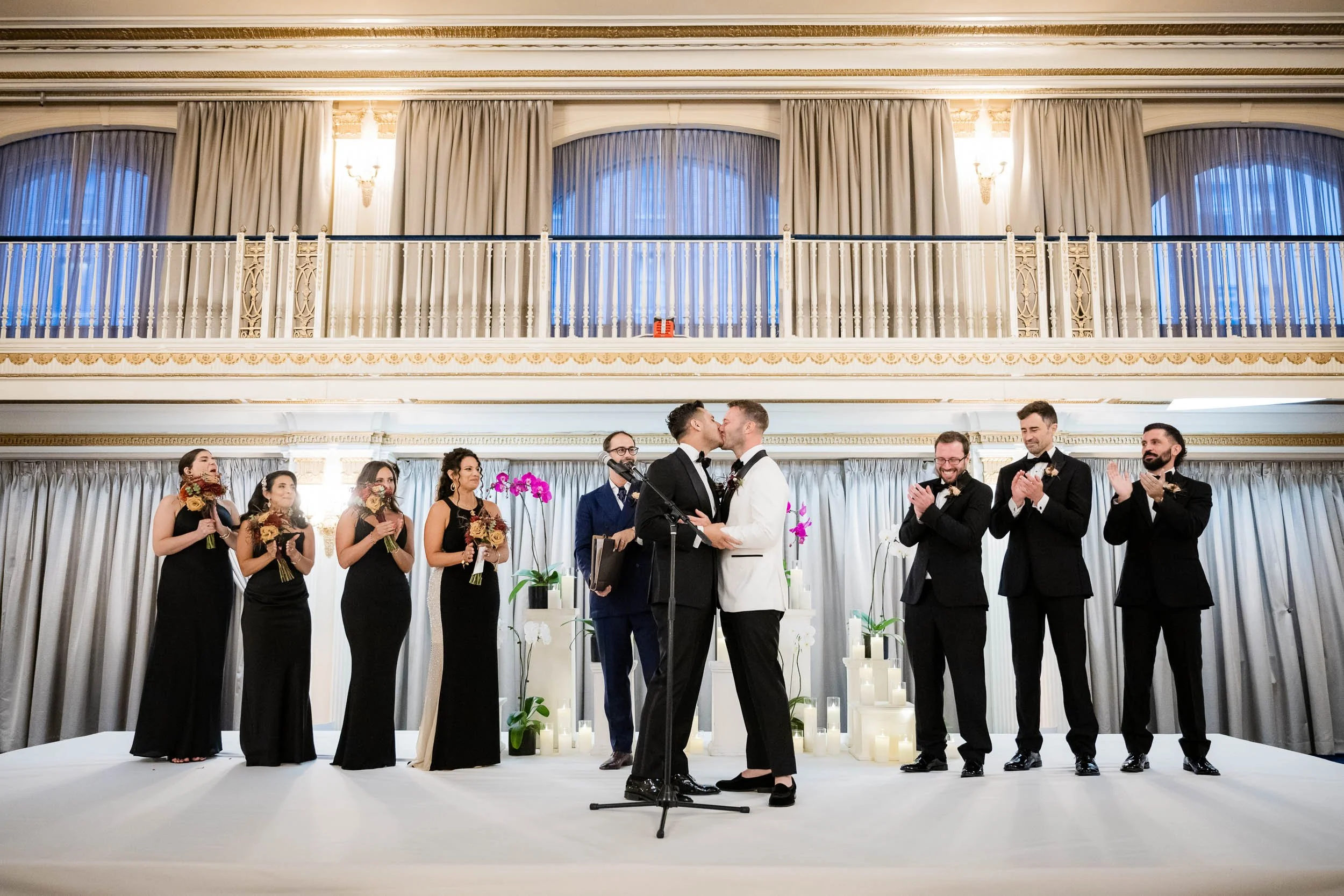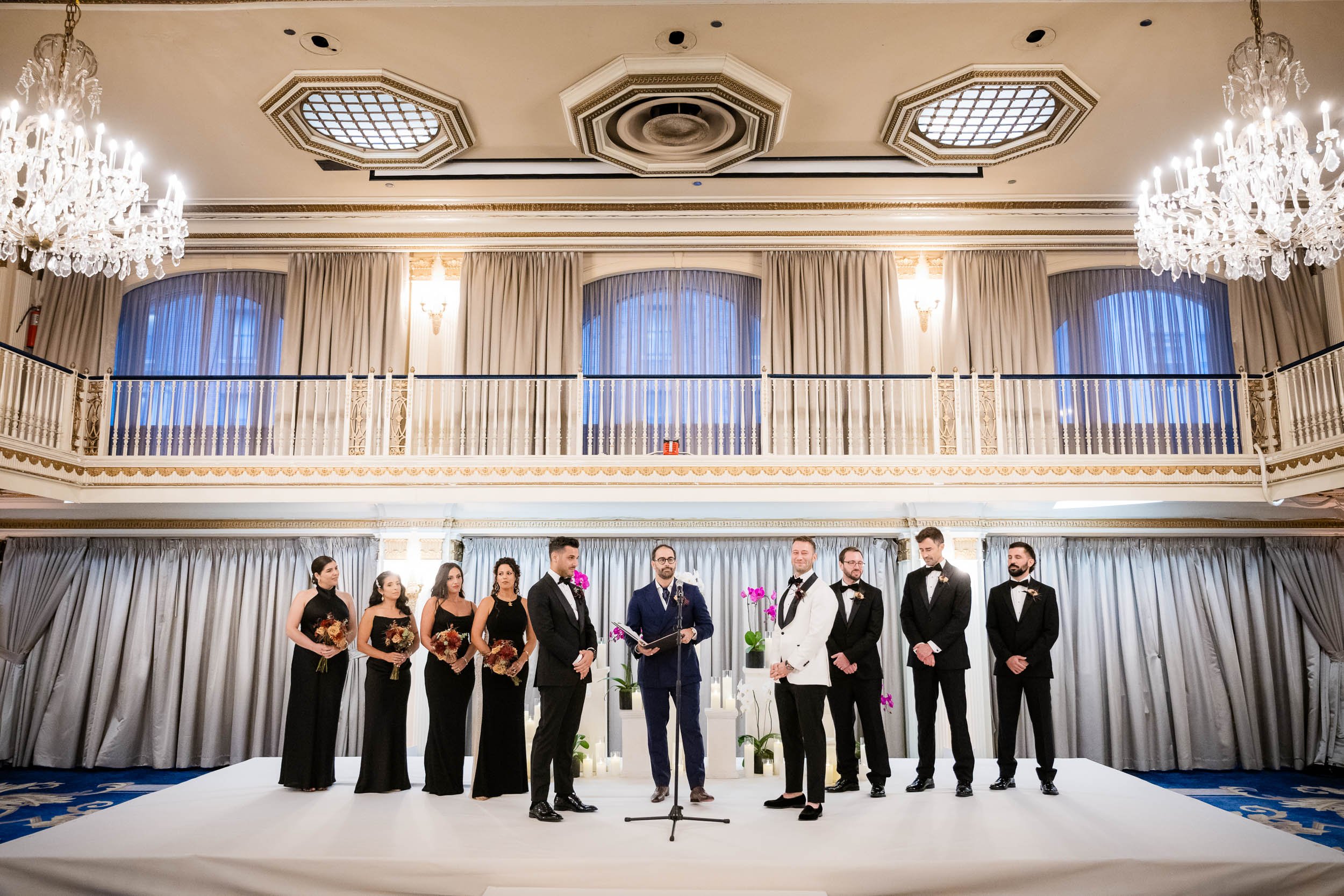 The morning started inside the Drake Hotel, where both grooms got ready together with their people close by. Thoughtful gifts were exchanged; for Nick a stylish watch he’s always wanted, and for Ed a pen, Japanese ink and journal since he loves to write. Nerves mixed with anticipation and excitement, but the but the first look with the wedding party turned that immediately turned into laughter and joy.