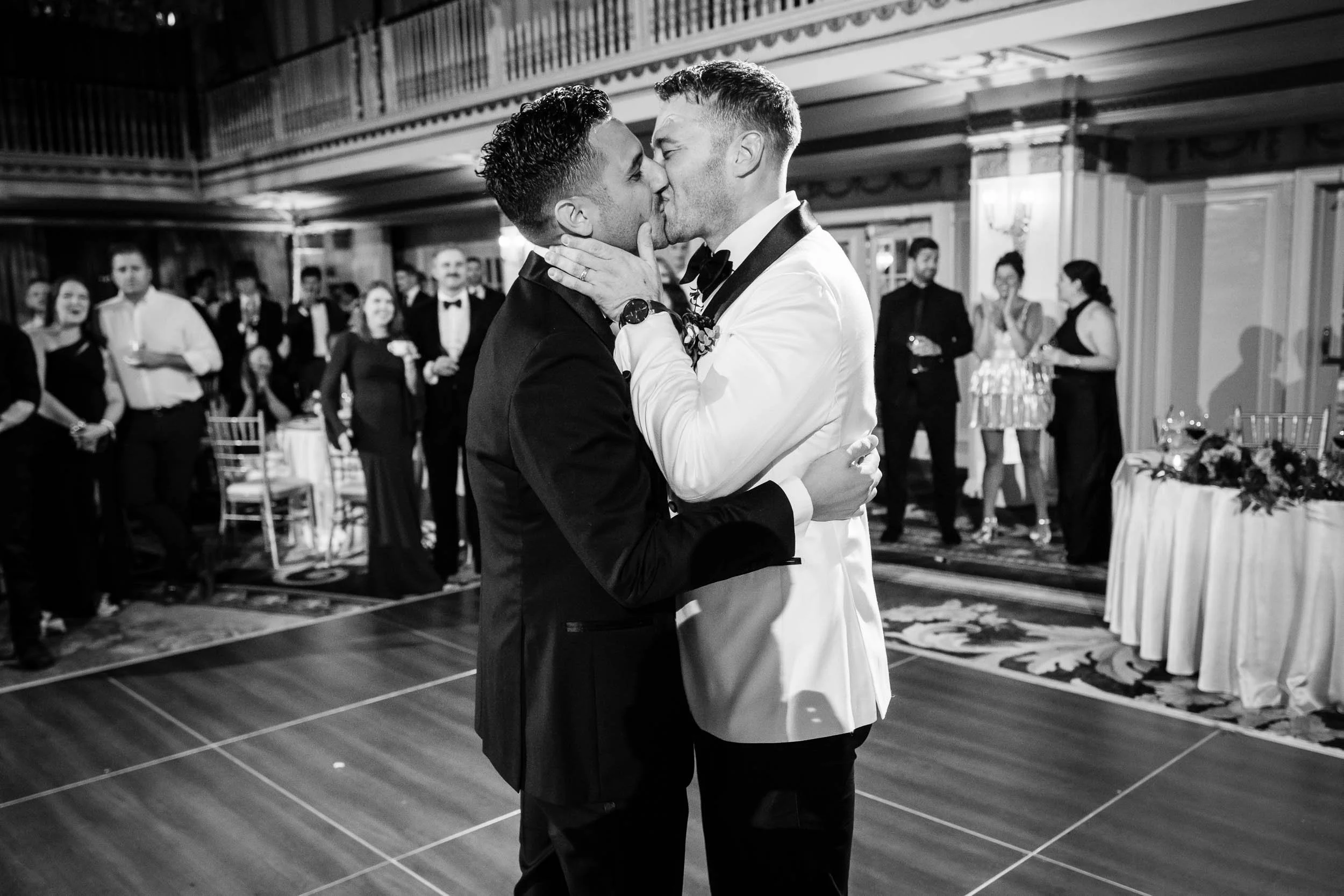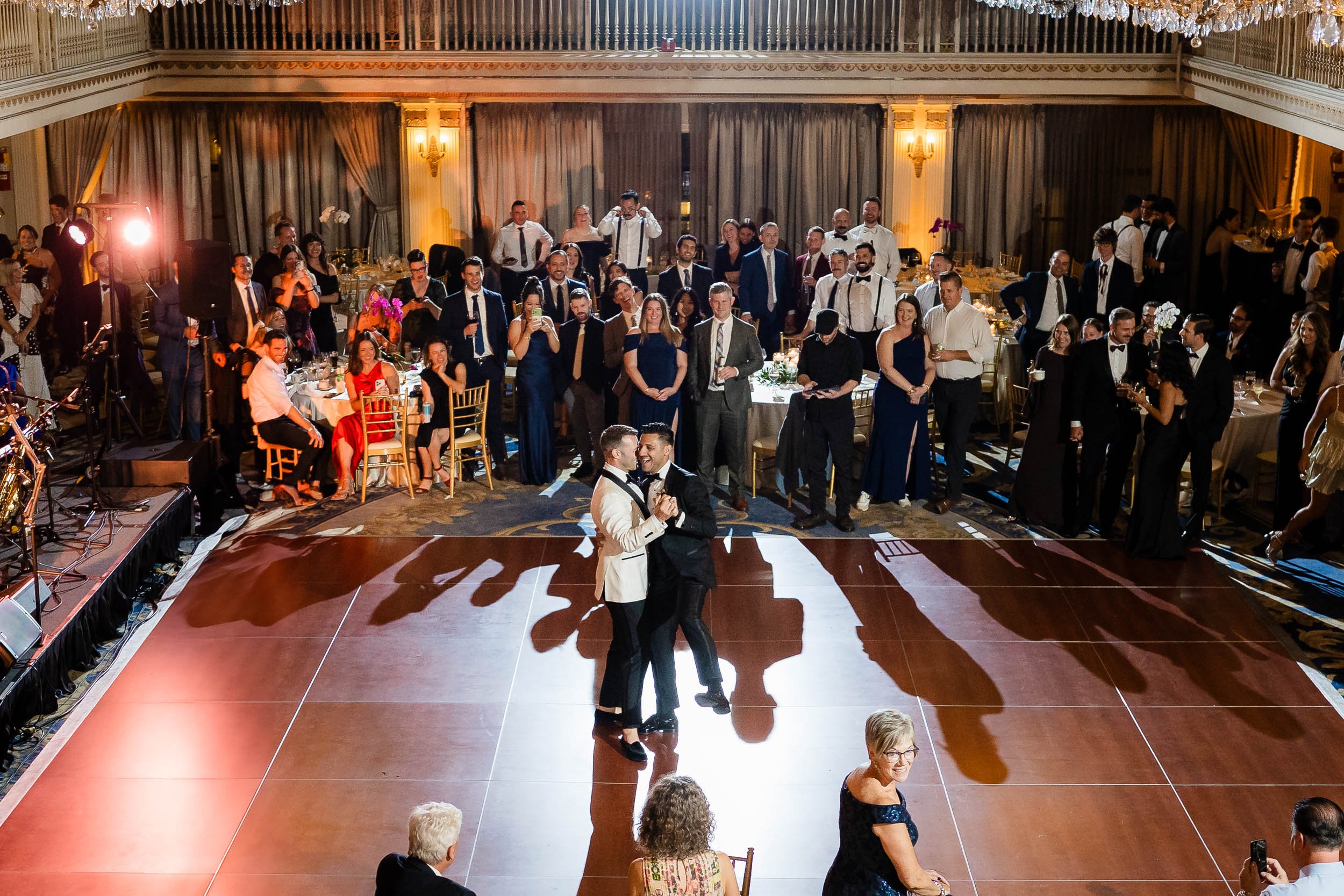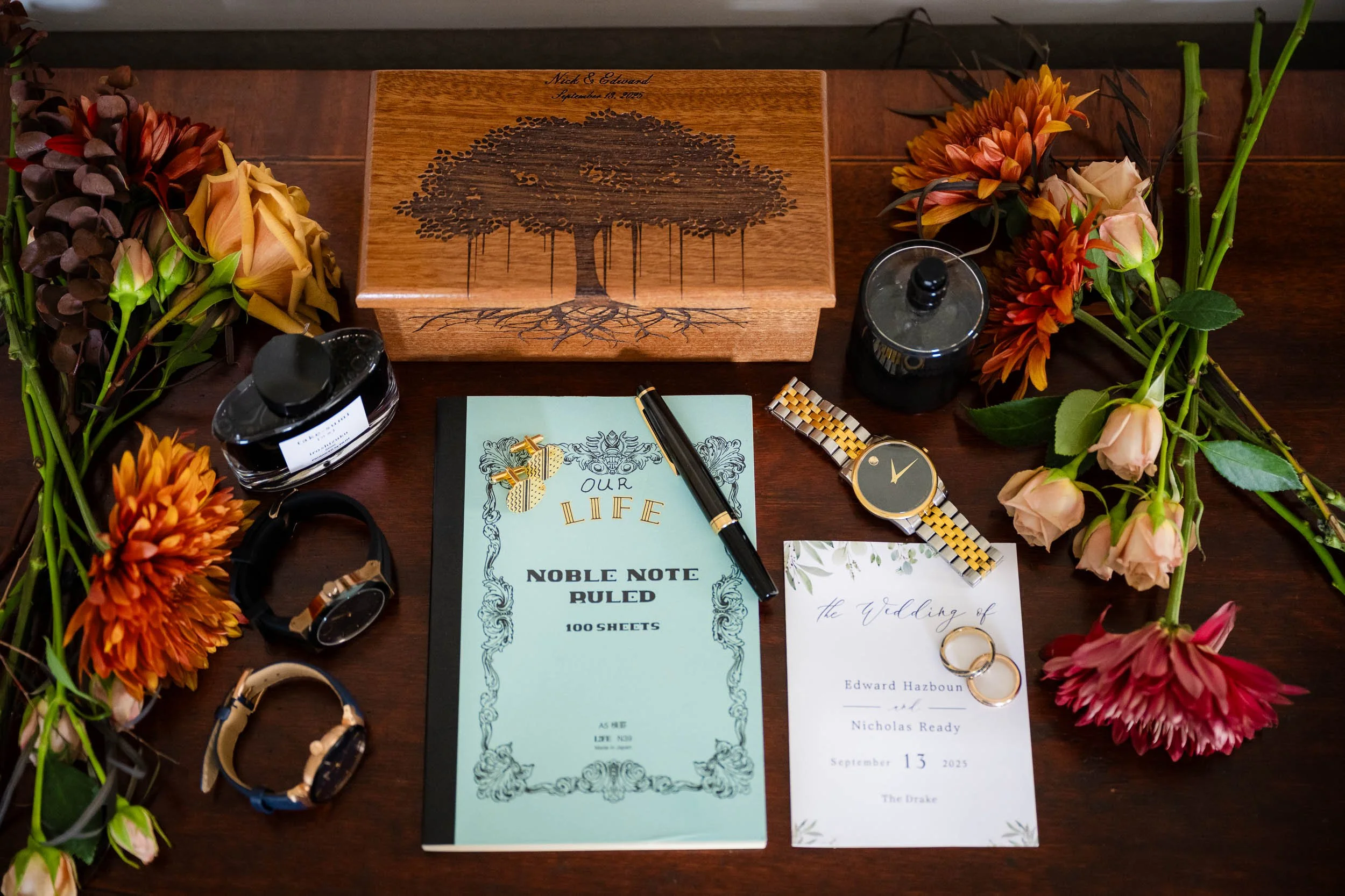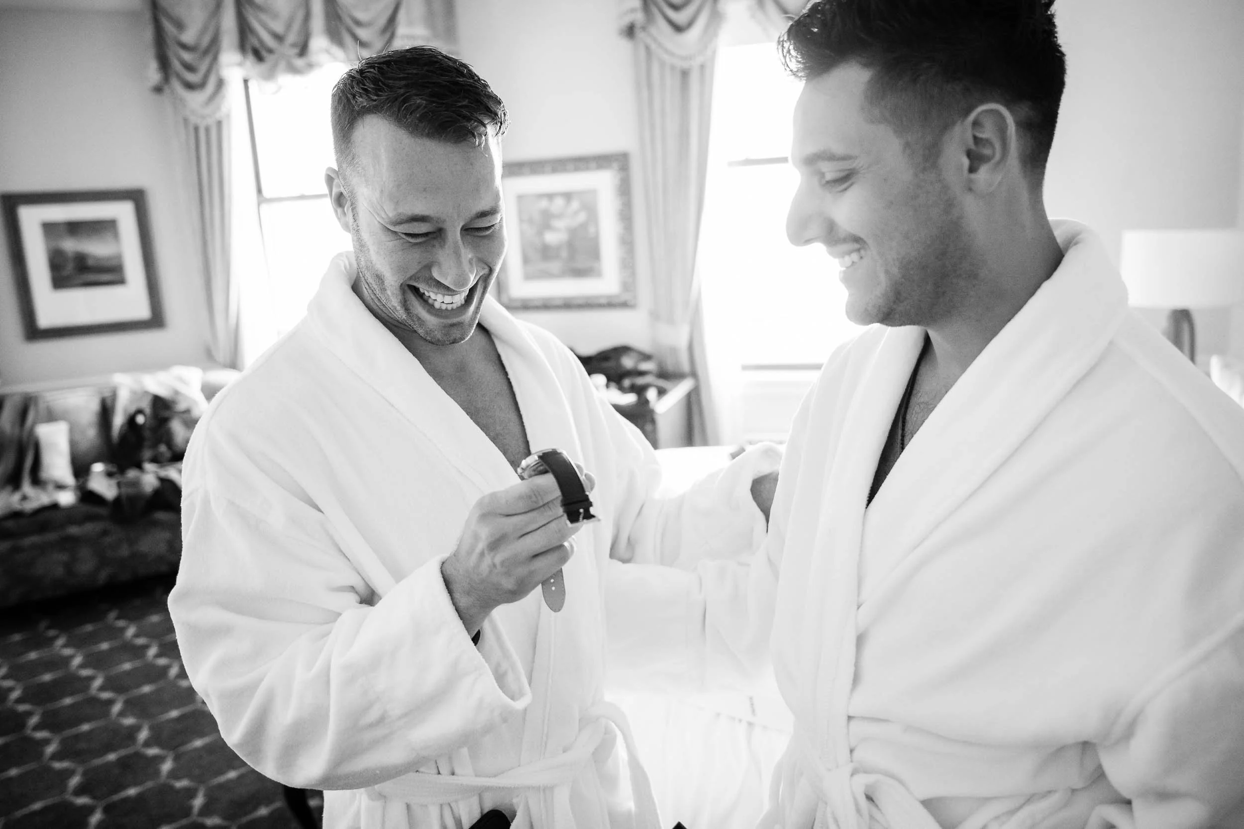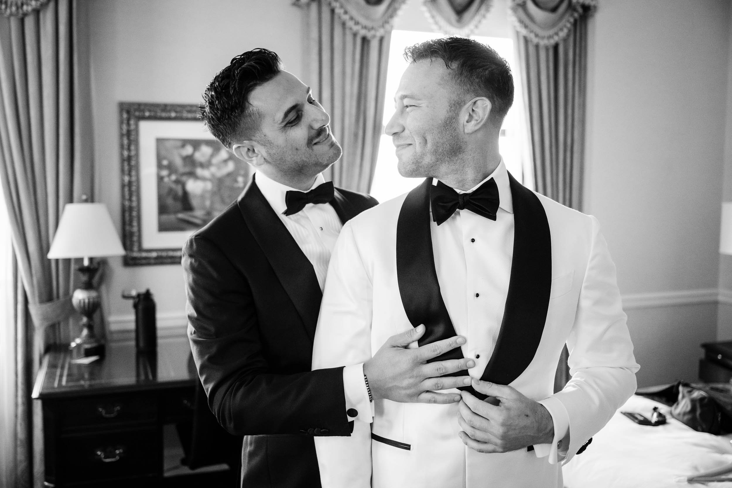 The morning started inside the Drake Hotel, where both grooms got ready together with their people close by. Thoughtful gifts were exchanged; for Nick a stylish watch he’s always wanted, and for Ed a pen, Japanese ink and journal since he loves to write. Nerves mixed with anticipation and excitement, but the but the first look with the wedding party turned that immediately turned into laughter and joy.