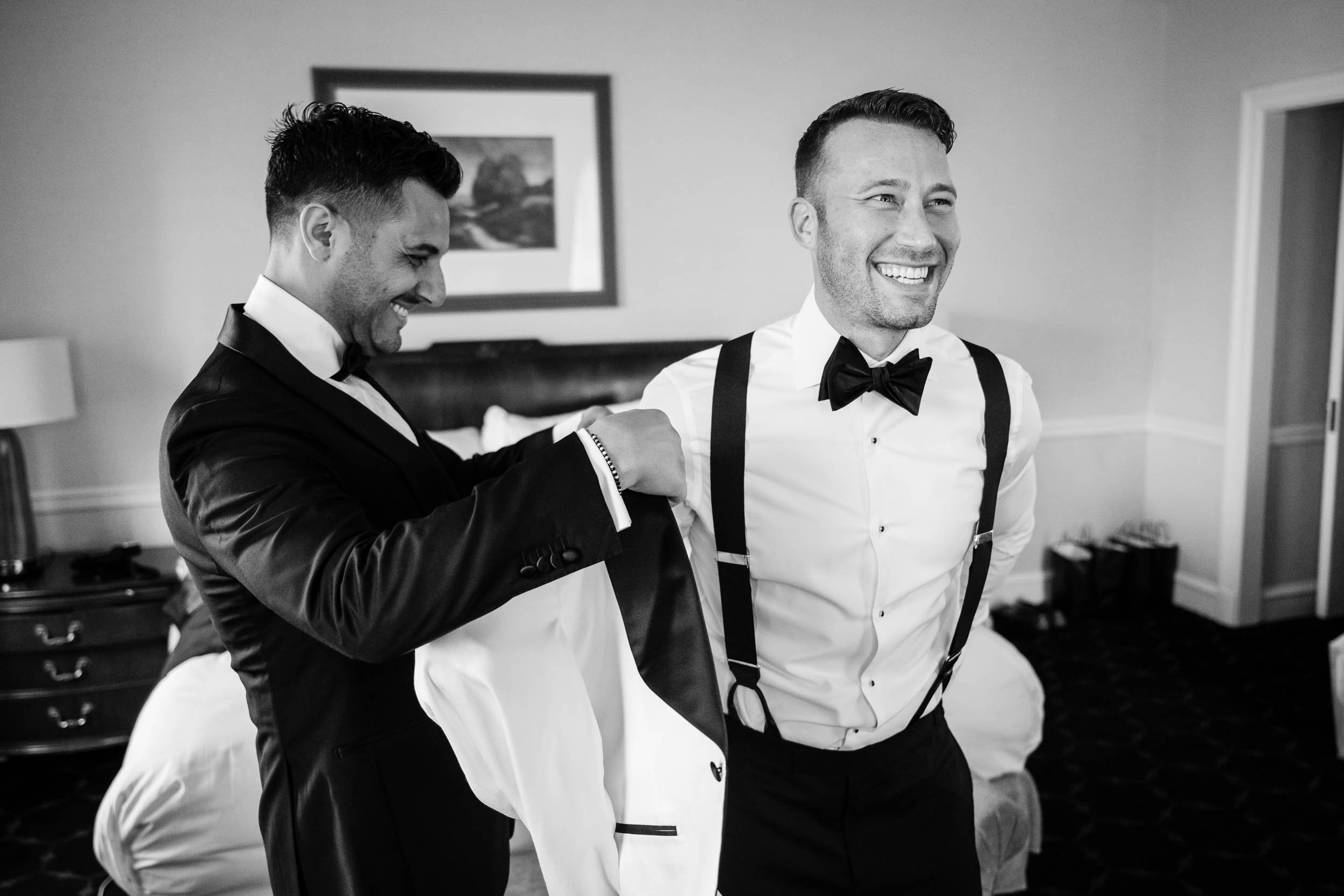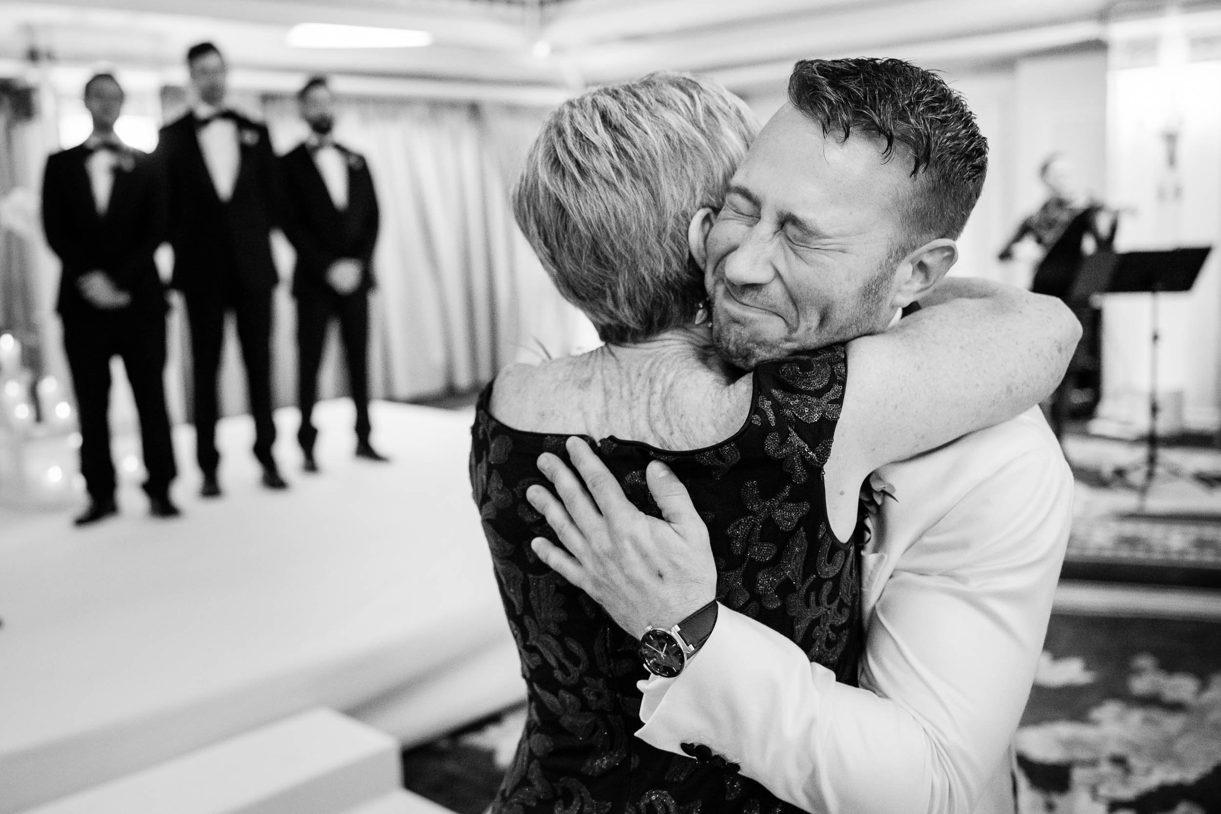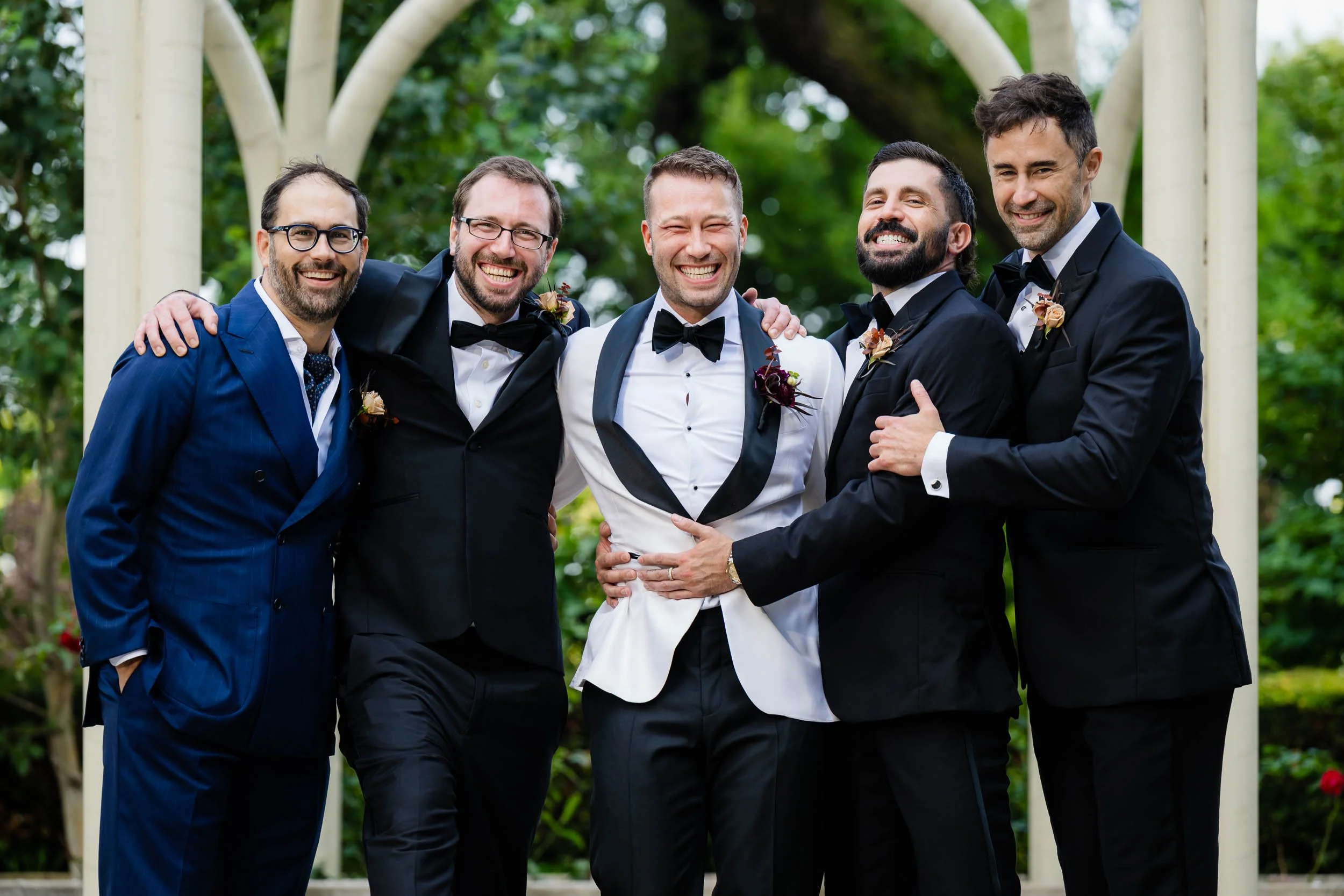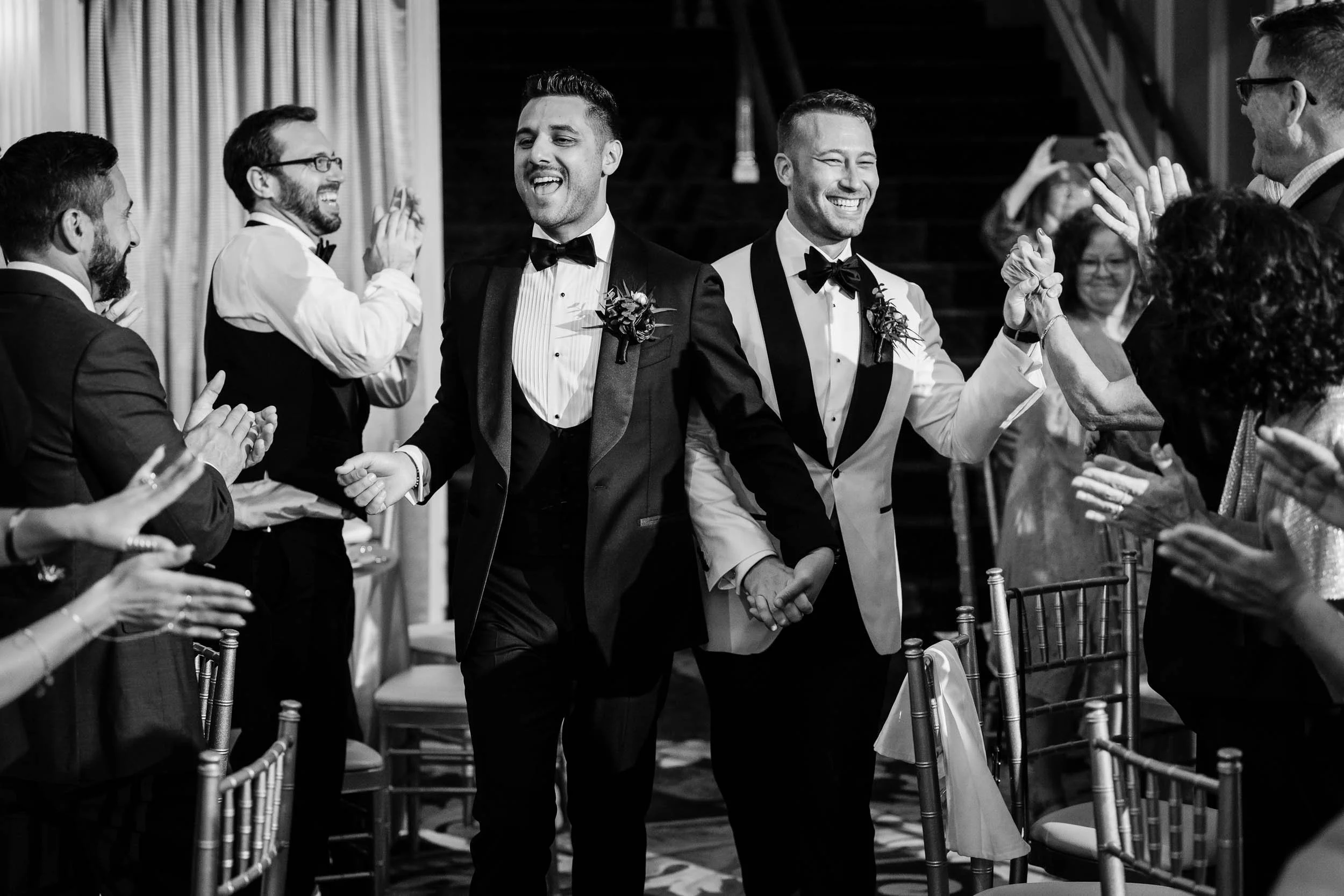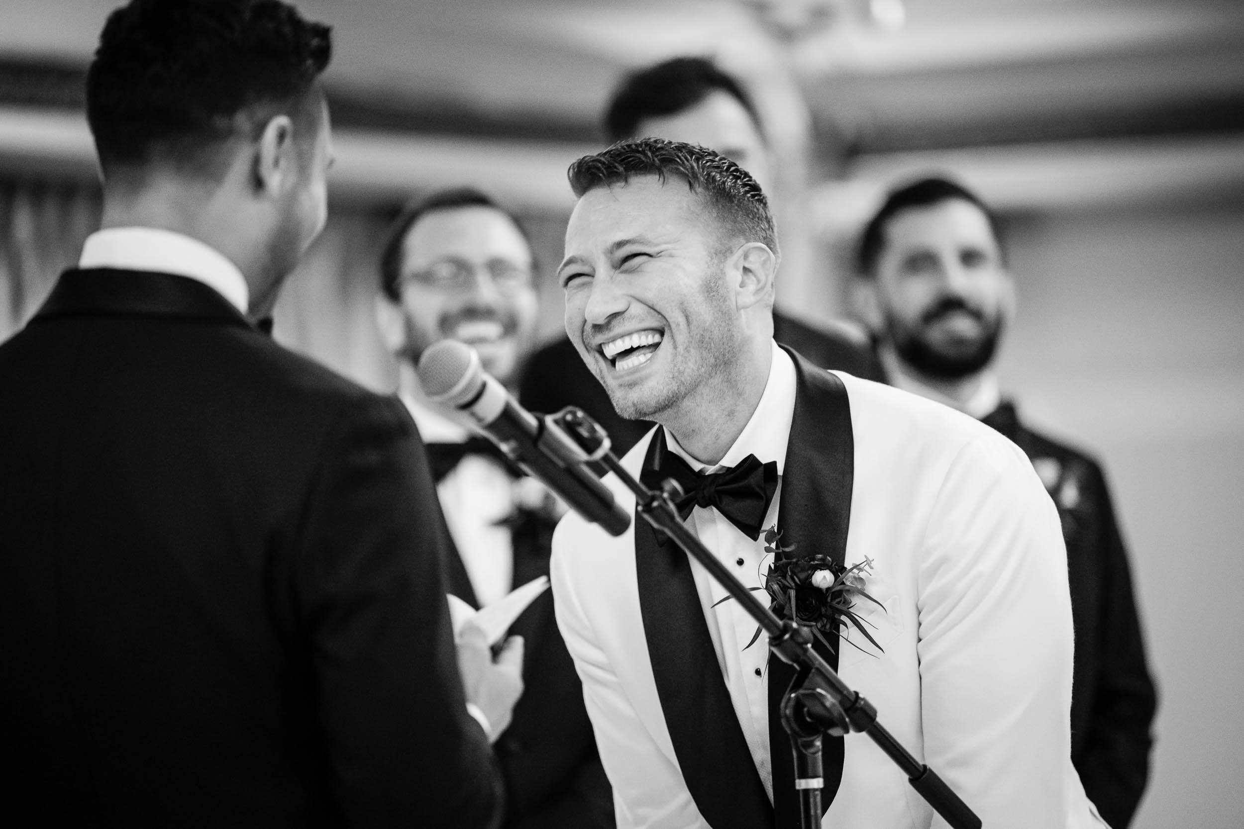 The morning started inside the Drake Hotel, where both grooms got ready together with their people close by. Thoughtful gifts were exchanged; for Nick a stylish watch he’s always wanted, and for Ed a pen, Japanese ink and journal since he loves to write. Nerves mixed with anticipation and excitement, but the but the first look with the wedding party turned that immediately turned into laughter and joy.